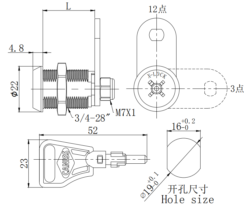 1.90°或180°旋轉(zhuǎn)實(shí)現(xiàn)開(kāi)啟或關(guān)閉。鑰匙在12點(diǎn)位置拔出。